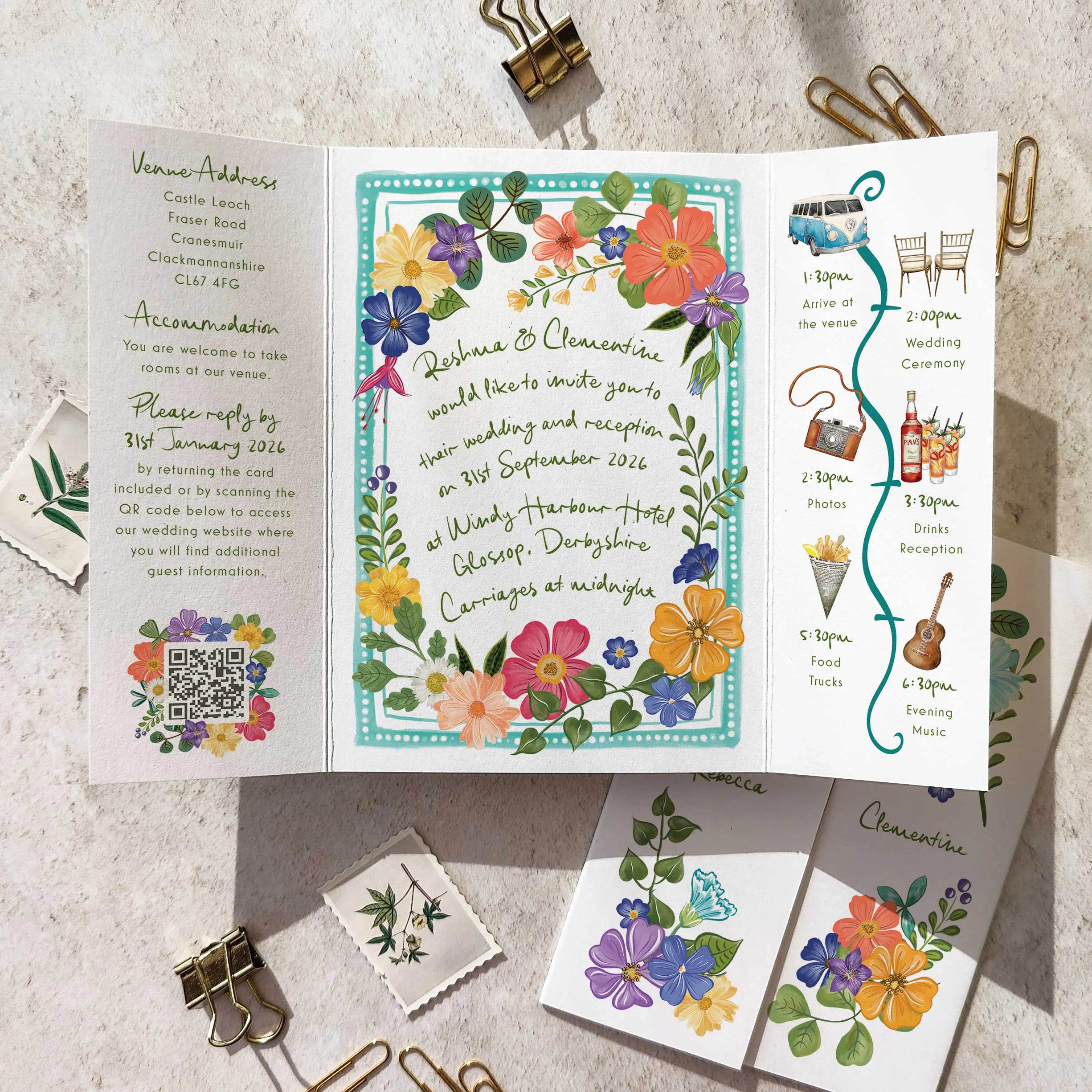 Bright and Colourful Festive Floral Gatefold A6 Wedding Invitation