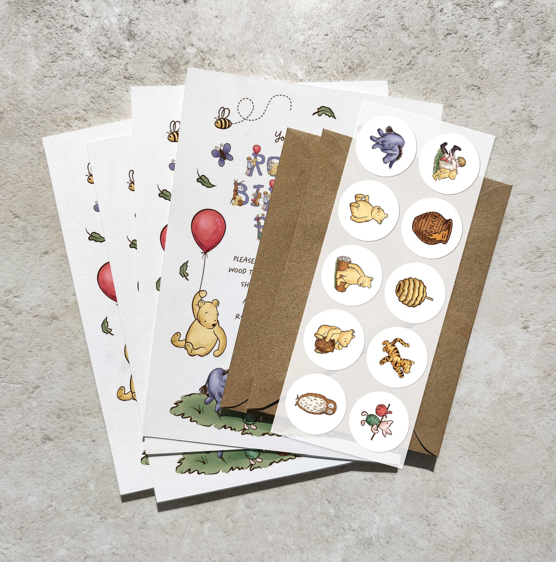 Bring the magic of the Hundred Acre Wood to your little one's birthday celebration! These charming Winnie the Pooh invitations are printed on premium 150gsm luxury paper and arrive with matching recycled brown envelopes. Each A5 invitation pairs perfectly with an A6 envelope, and every set includes 10 delightful stickers to seal the fun. Fully personalised with your chosen details and printed single-sided for a polished finish. A honey-sweet way to invite friends to an unforgettable party!