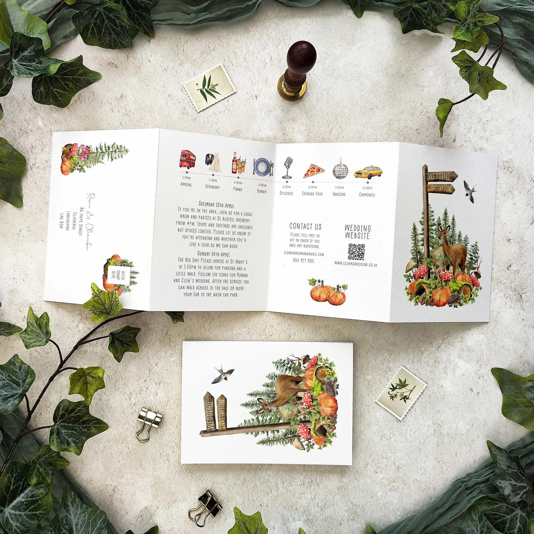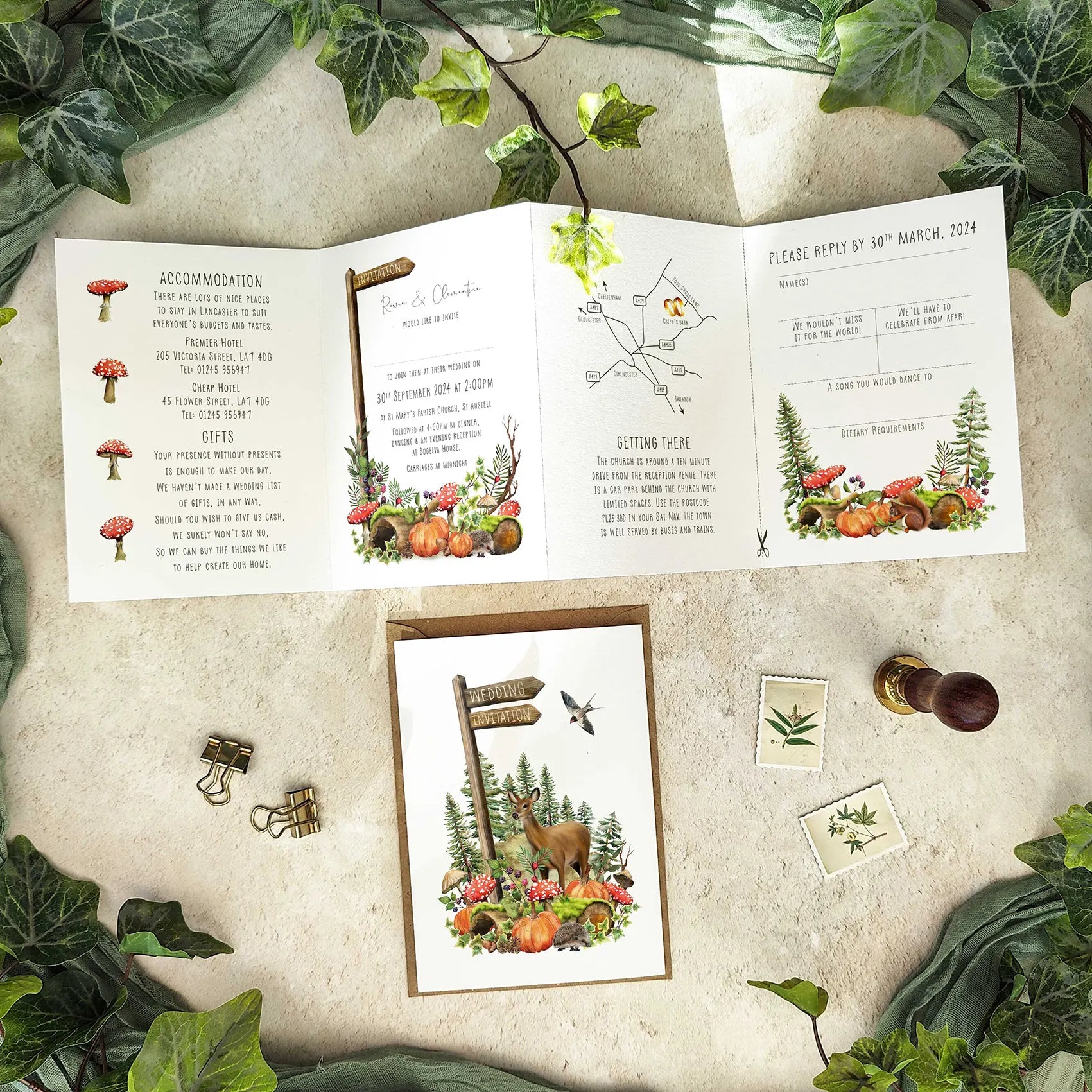 See your event come to life with our Autumn Woodland Animals Landscape Concertina Invitation. The intricate design showcases a beautiful woodland scene, adding a touch of nature to your special occasion. Made with high-quality materials, this invitation is sure to impress your guests. Order now and make your event one to remember.