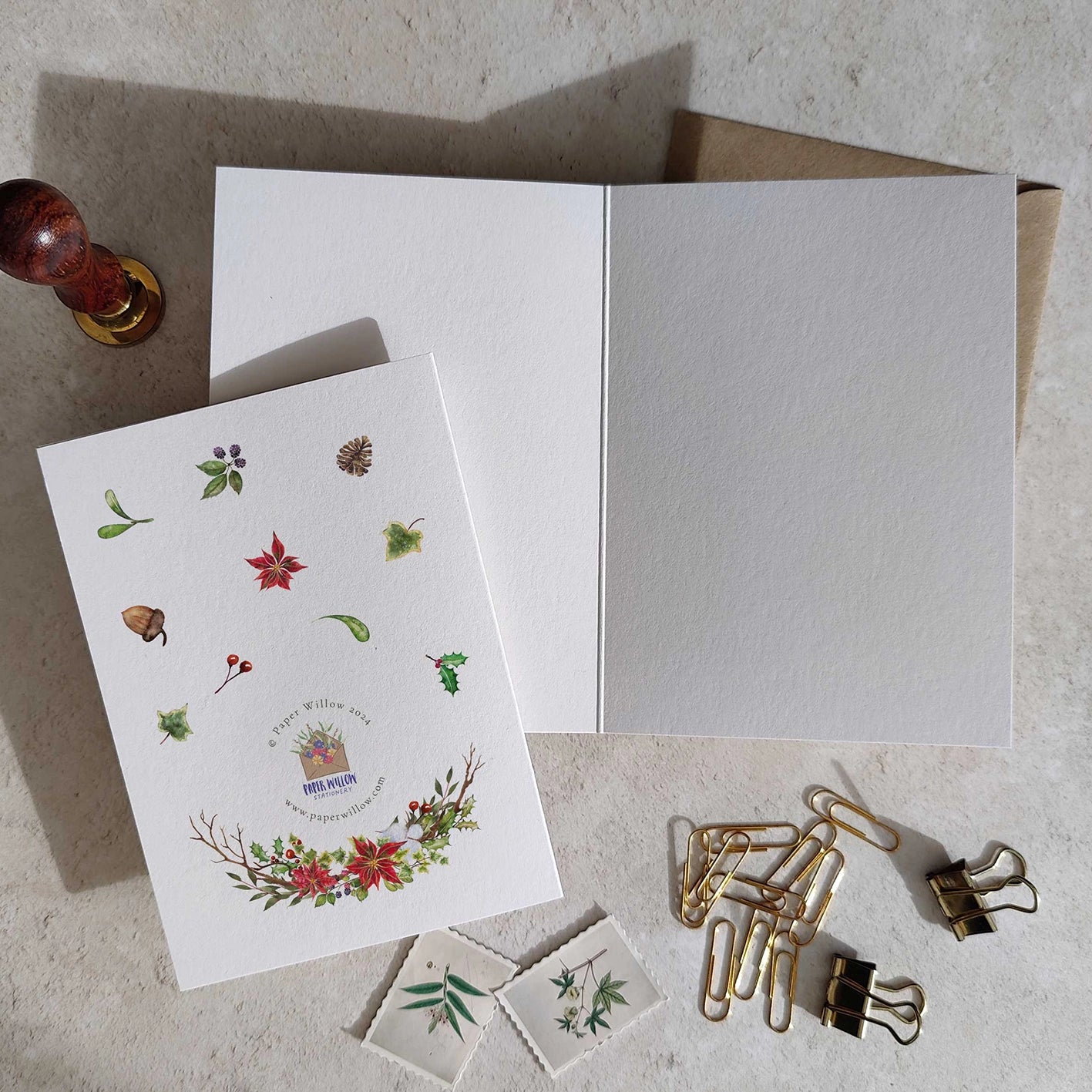 The Botanical Watercolours Christmas Card & Envelope showcases delicate hand-painted botanical designs that evoke the natural beauty of the holiday season. Printed on high-quality paper, this card combines artistic elegance with festive charm, making it an ideal choice for conveying your Christmas greetings with sophistication. The coordinating envelope completes the set, ensuring a polished presentation for your seasonal messages.