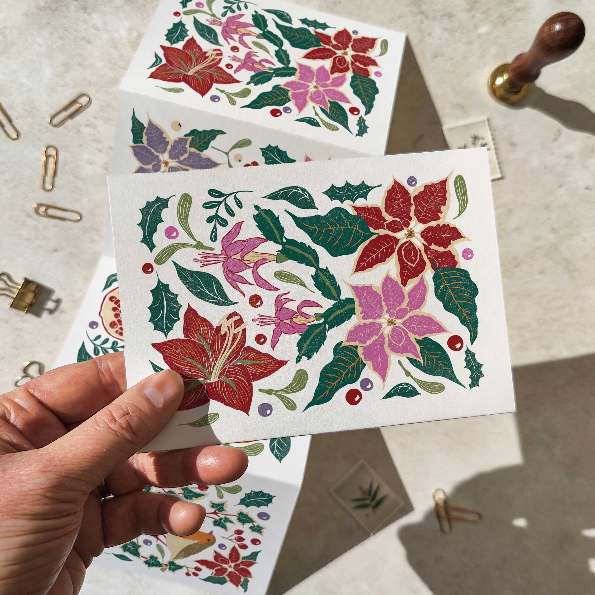 Christmas Plants and Flowers Luxury Concertina Cards & Envelopes