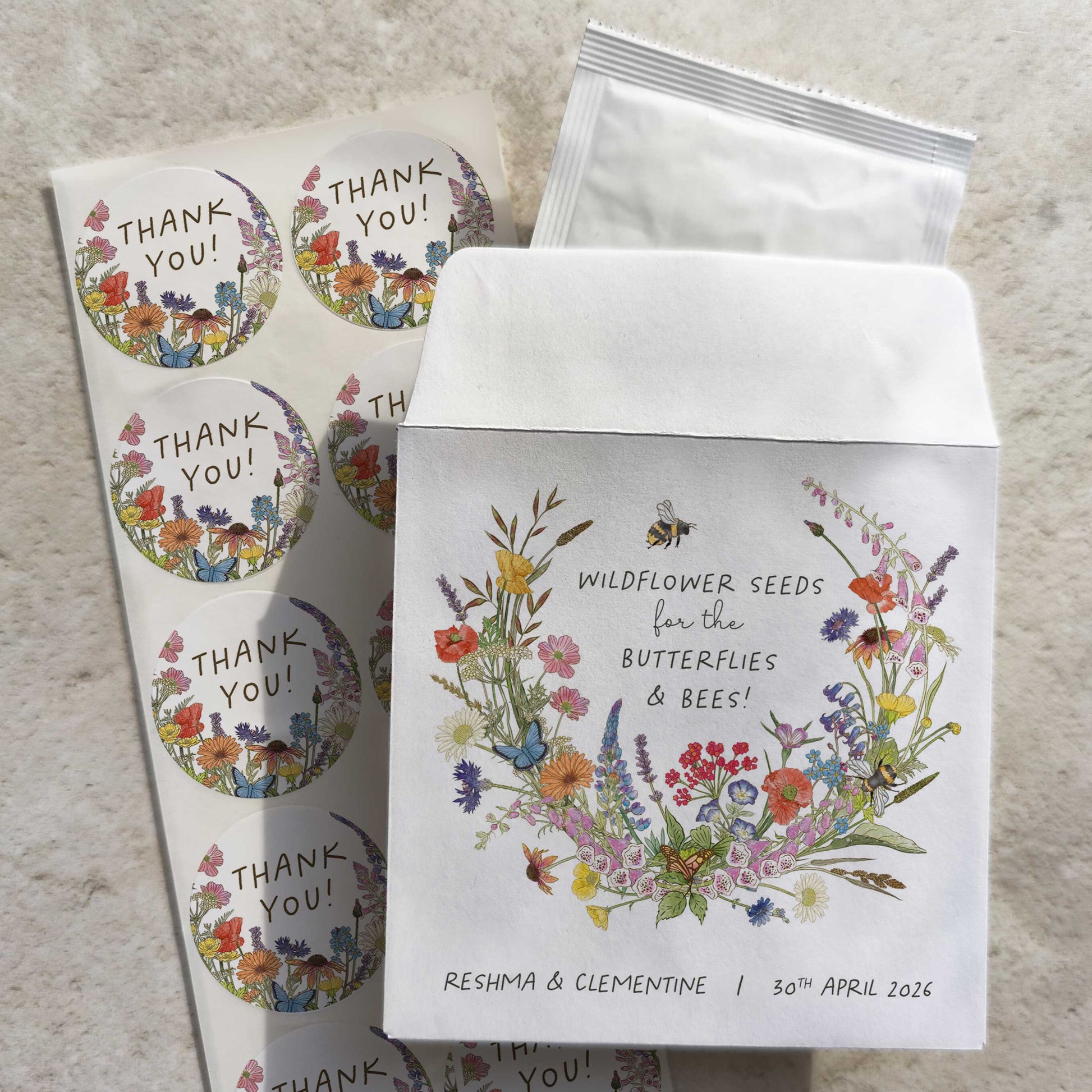 Transform your wedding into a flourishing garden with our Wildflower Meadow Seed Packet Favours. These personalised seed packets are a perfect way to thank your guests and add a touch of nature to your celebration. Choose from a variety of seed options and optional stickers with beautiful floral designs.