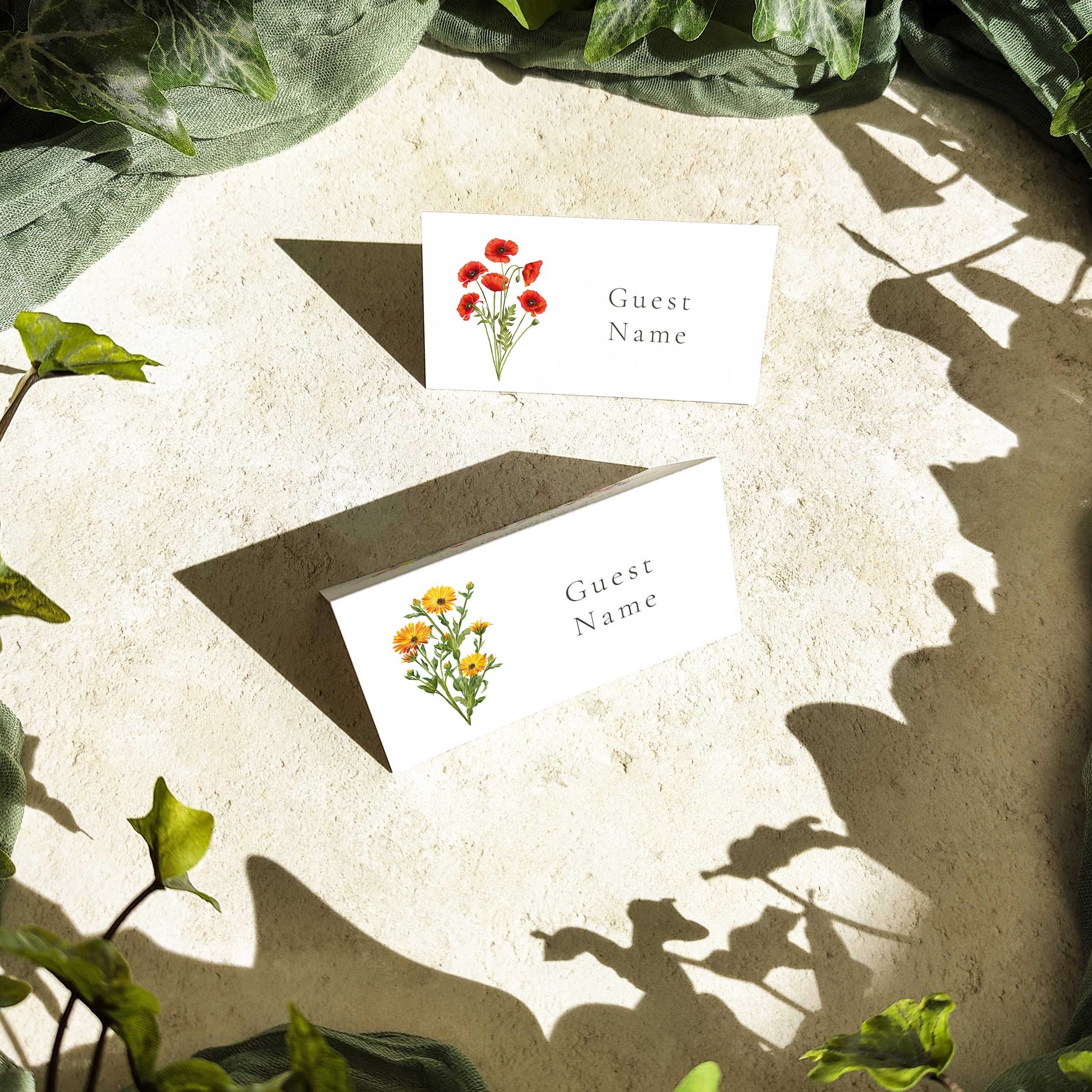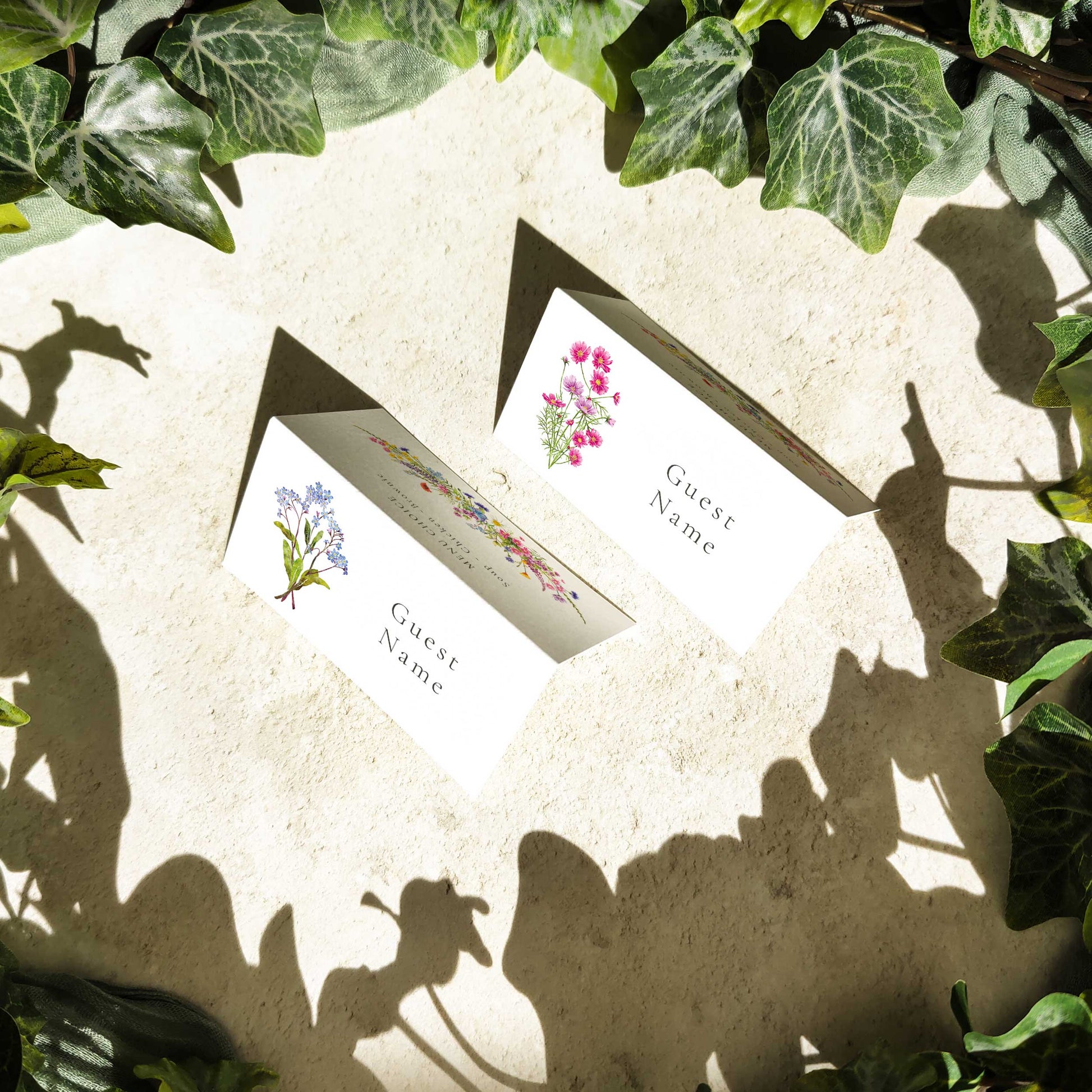 Add a touch of natural beauty to your event with our Wildflower Meadow Folded Place Cards. Each card showcases a variety of British wildflowers and can be personalized with your guests' names. Give your event a personal and unique touch with these charming place cards.