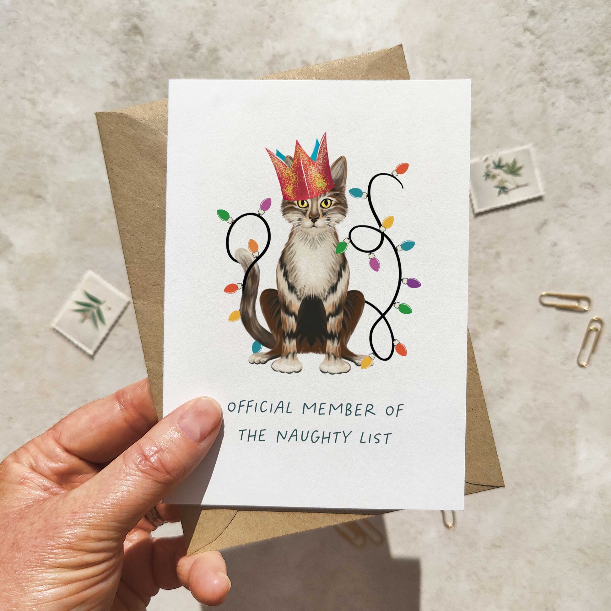 Say hello to holiday cheer with this adorable tabby cat card, complete with a festive Christmas hat that's almost as charming as the striped feline wearing it. This folded card arrives with a matching envelope, ready to deliver your seasonal greetings with style. Perfect for tabby enthusiasts and cat lovers everywhere, the playful design captures all the warmth and whimsy of the festive period. Choose from two delightful options to match your mood and find the perfect card for spreading joy to friends, family, and fellow feline admirers this Christmas.