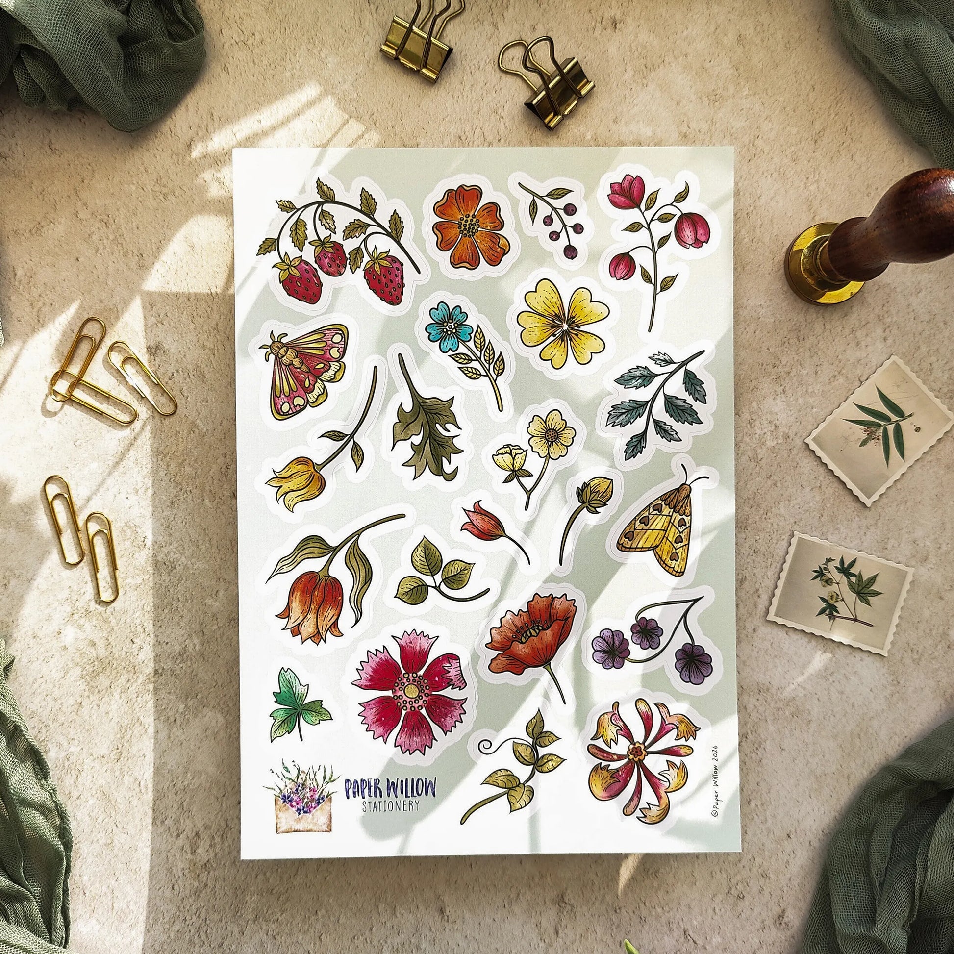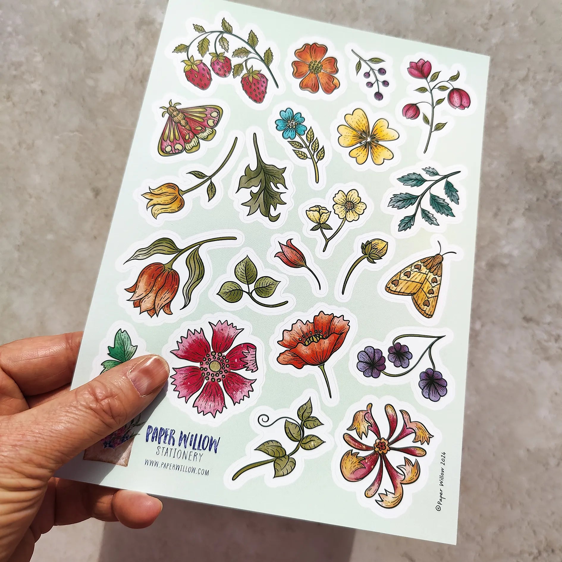 Vintage Retro Floral A5 Vinyl Sticker Sheet