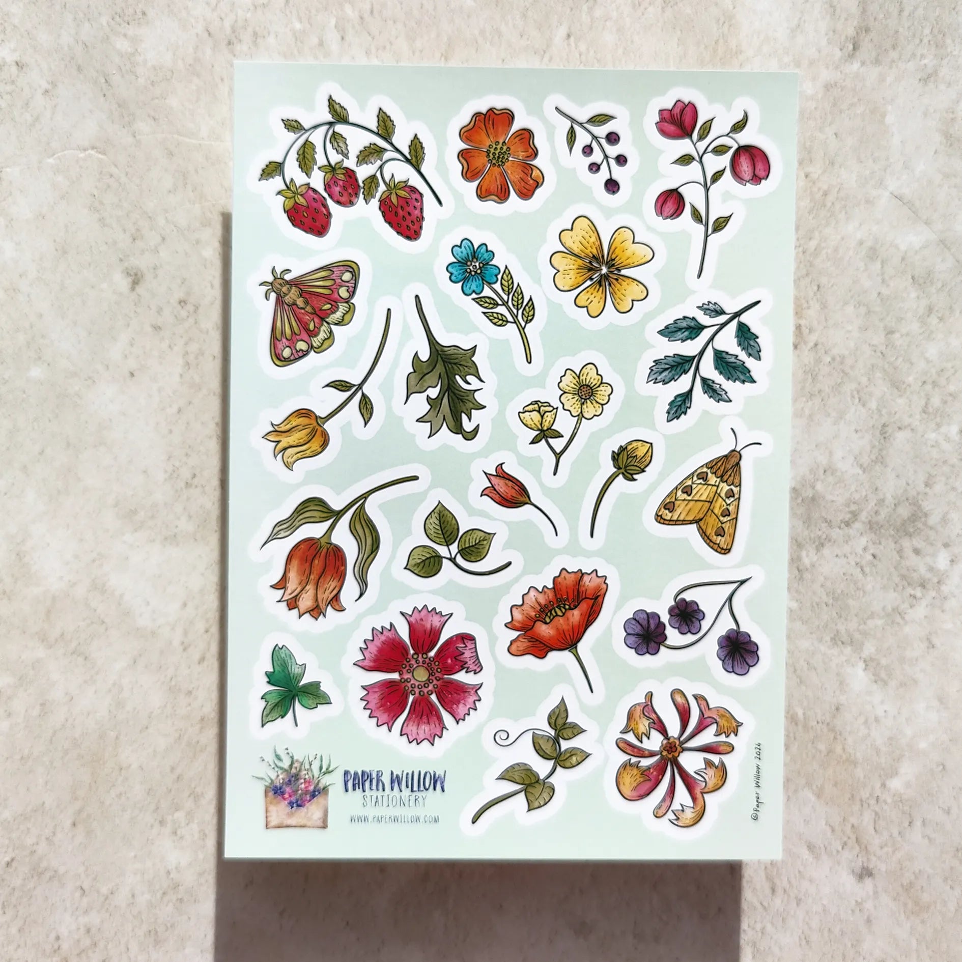 This floral sticker sheet is printed to waterproof pvc sticker material so are suitable for surfaces such as a laptop or cup. These are digitally printed with a Matt finish.
