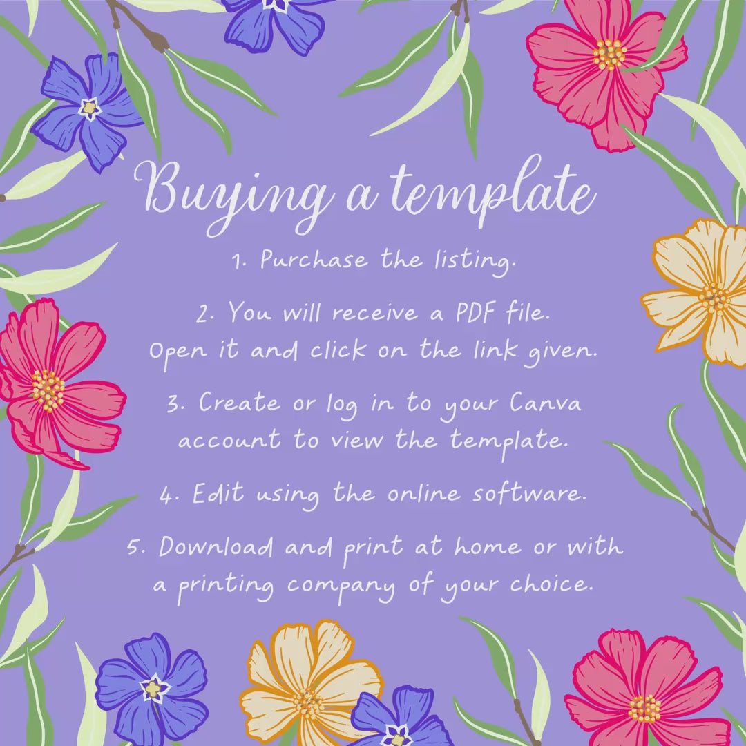 After you have placed your order with Etsy you will receive a pdf download containing a link inviting you to edit your file in Canva.