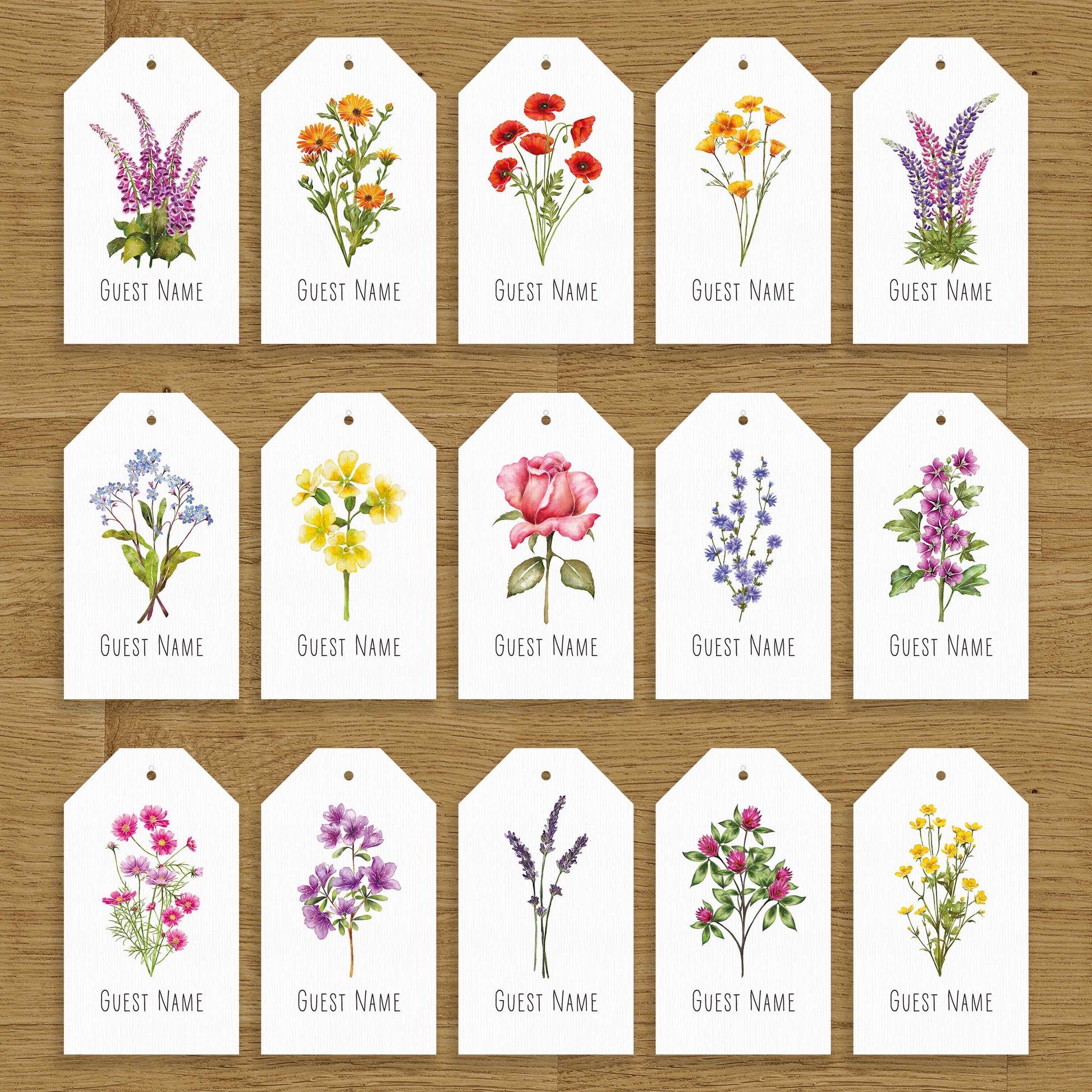 Elevate your wedding with our Wildflower Meadow Luggage Tags. Handmade with care, each place card tag features a unique, hand-painted wildflower design. Choose from a variety of options.