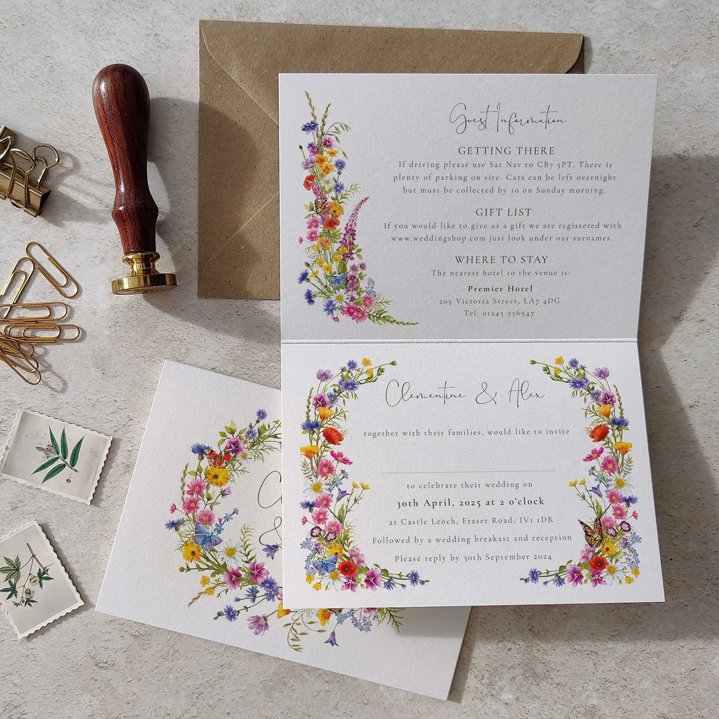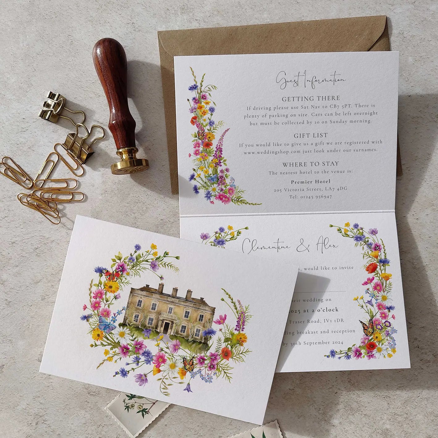 Wildflower Wedding Folded Invitation With Optional Venue Painting