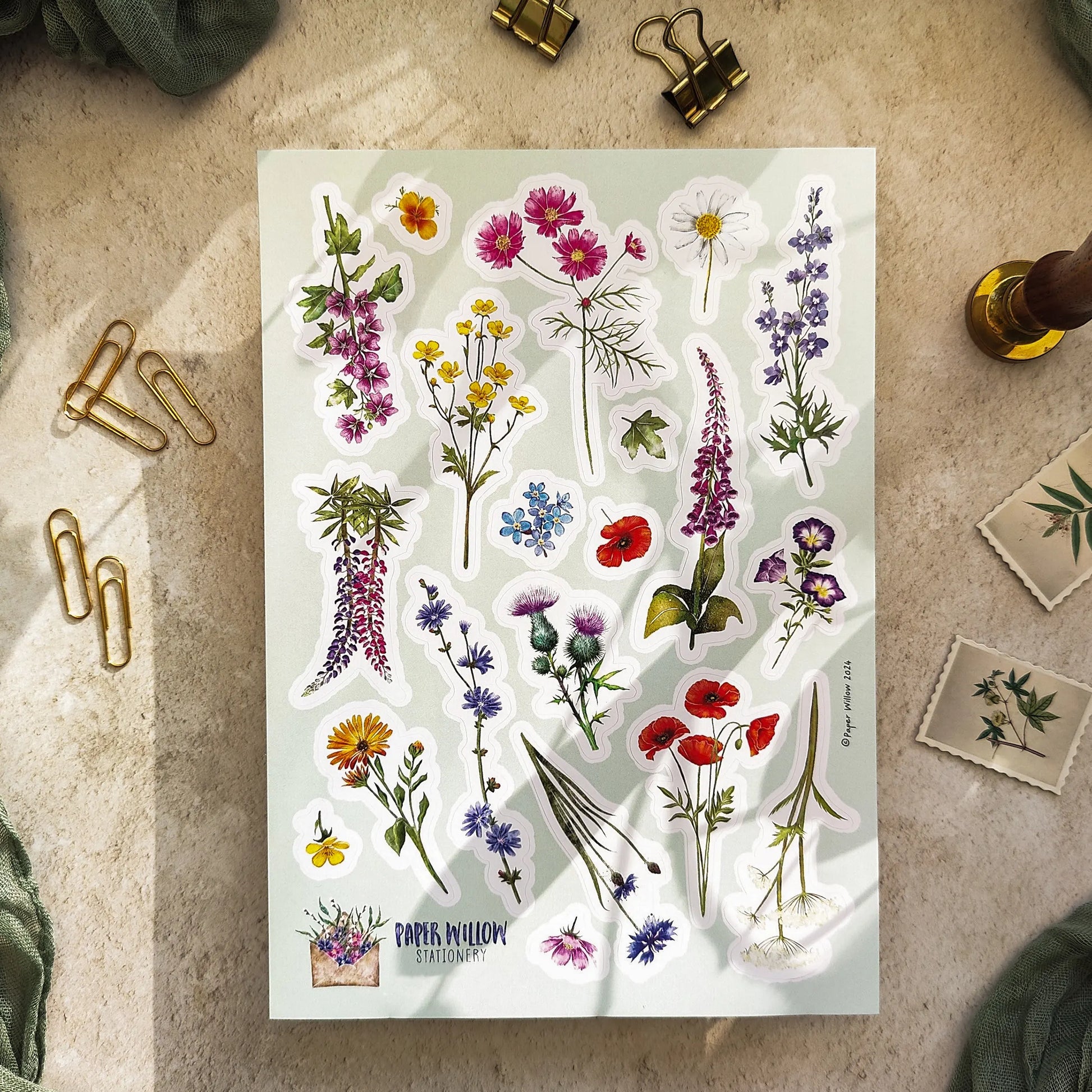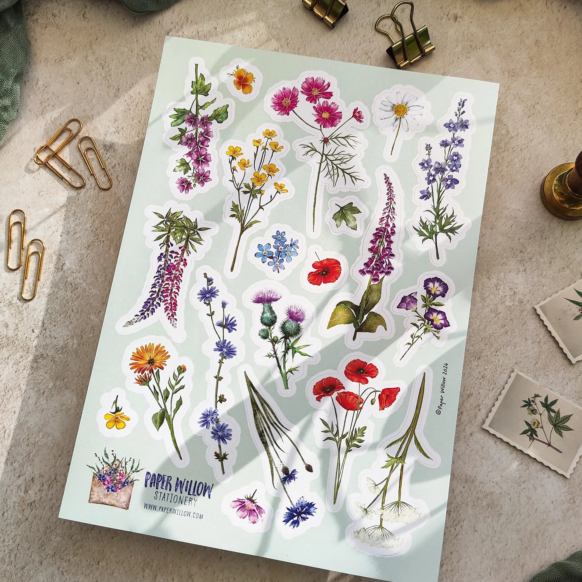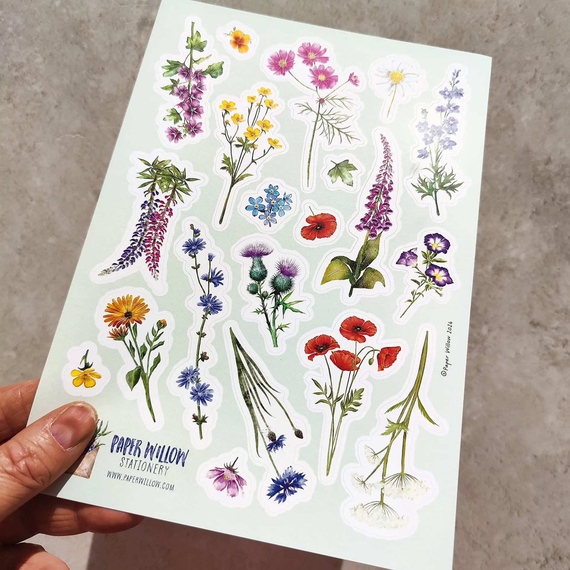 This wildflower sticker sheet is printed to waterproof pvc sticker material so are suitable for surfaces such as a laptop or cup. These are digitally printed with a Matt finish.