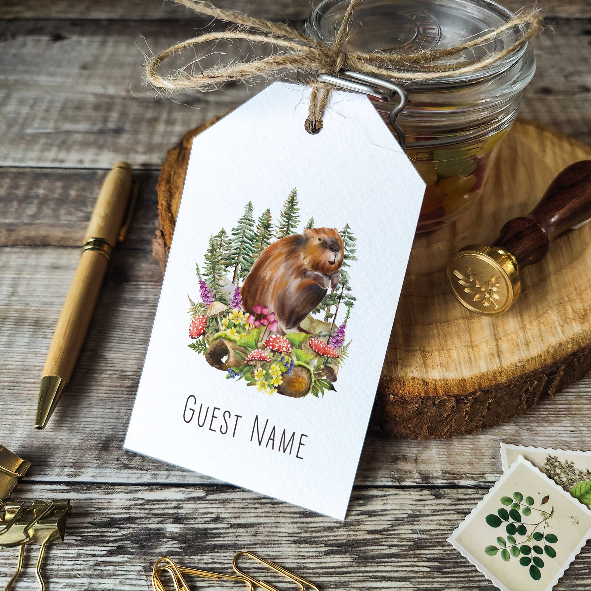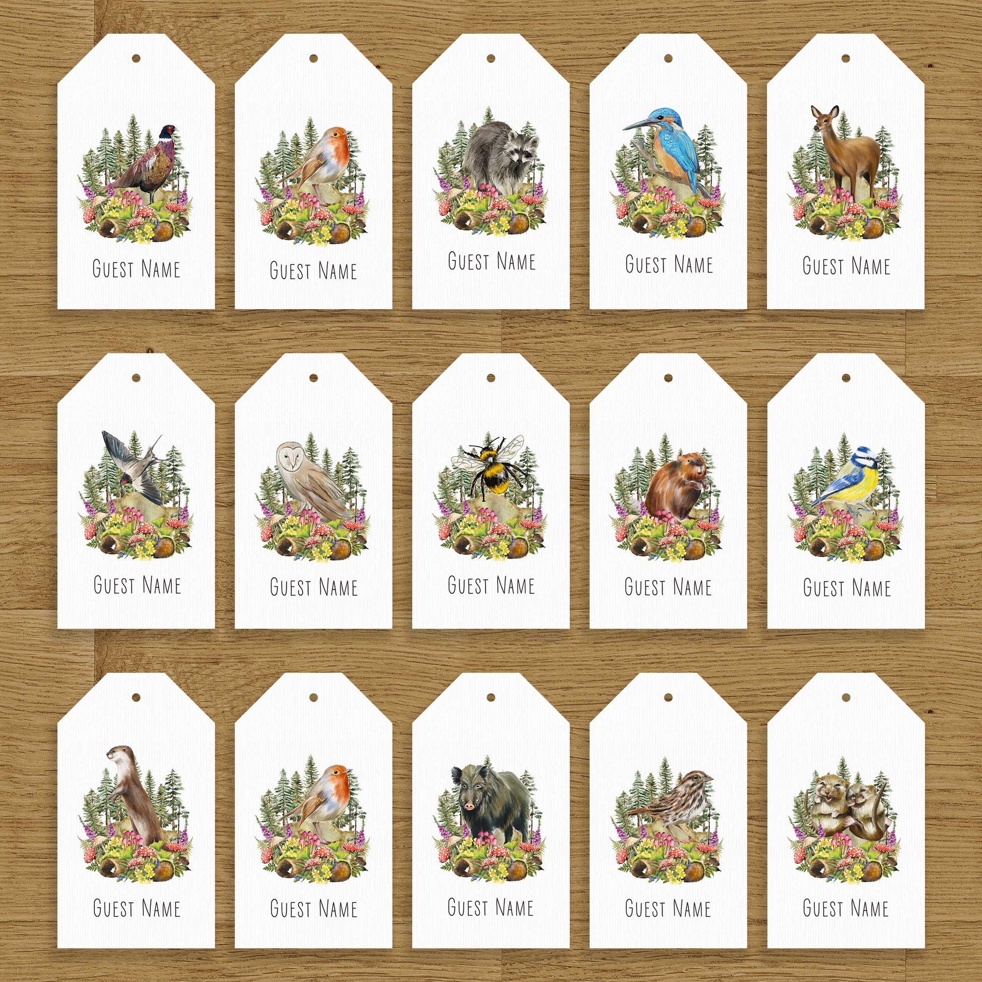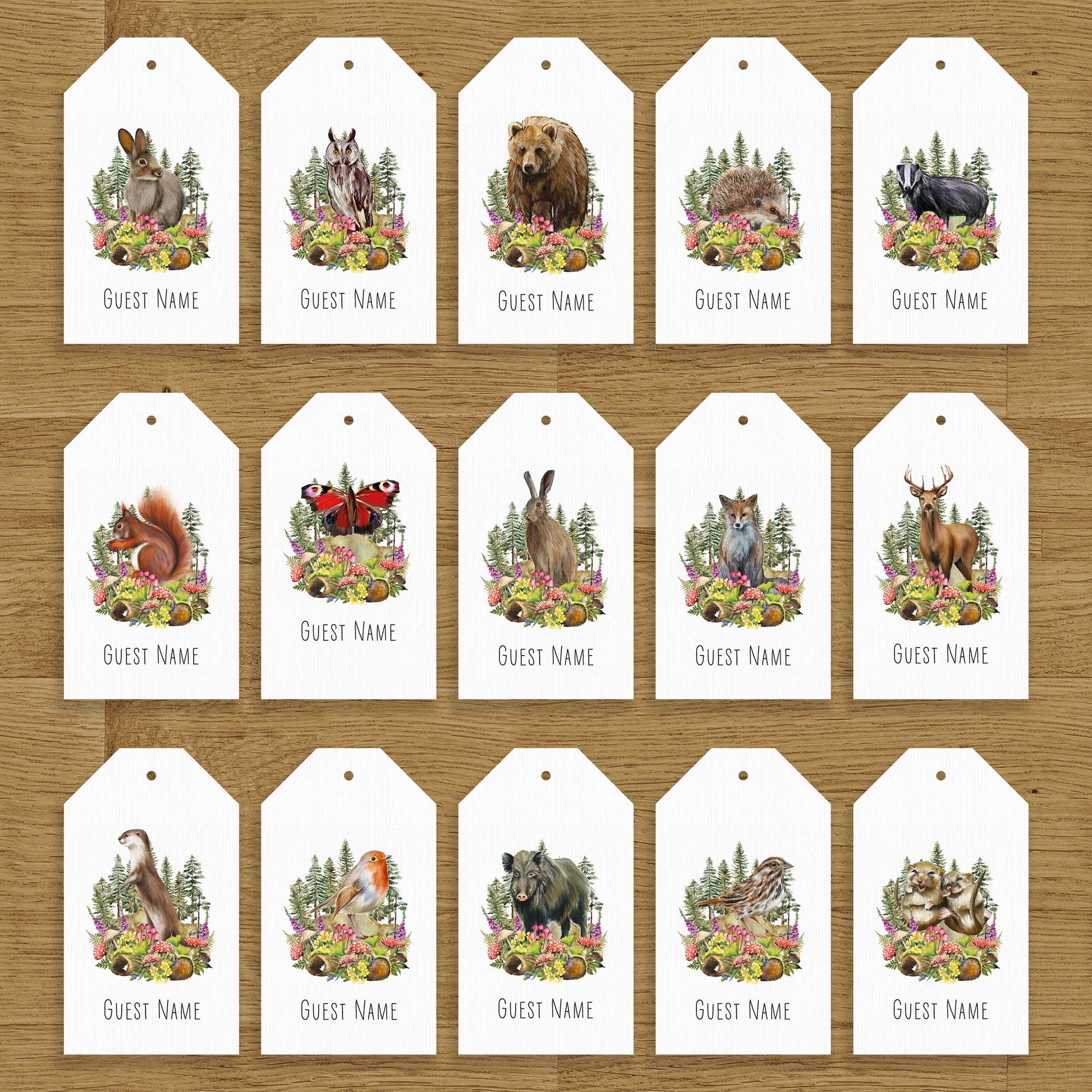 Woodland Animal Themed Guest luggage tags printed to luxury cardboard and supplied with string.